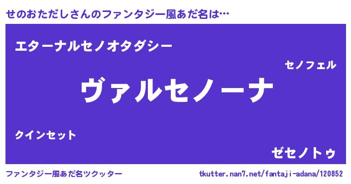 男性向けラノベタイトル風あだ名 | 『魔弾の王とせのおただし』 |