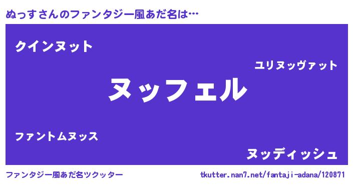 | ポケモン風あだ名 | 『ヌッチュウ』『ヌックウザ』 |