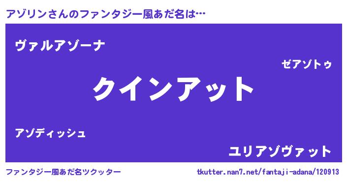 | 女子向けラノベタイトル風あだ名 | 『アゾリン夫妻のなれそめ』 |