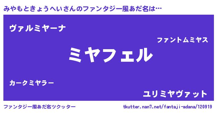 | ヘコむあだ名 | 『みやにー』『みやお』『なまこ酢』 |