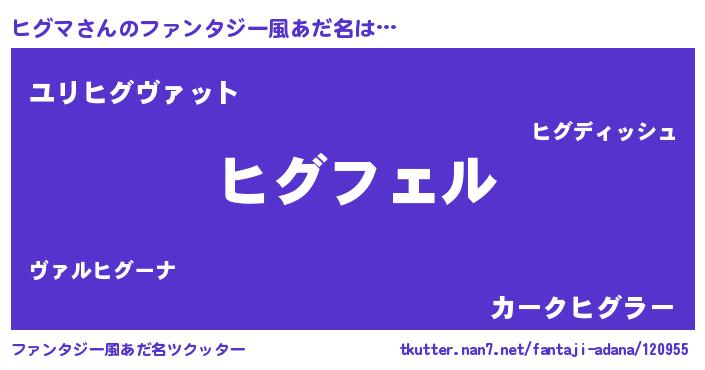 | ヘコむあだ名 | 『ヒグにゅー』『ヒグマ(震え声)』 |