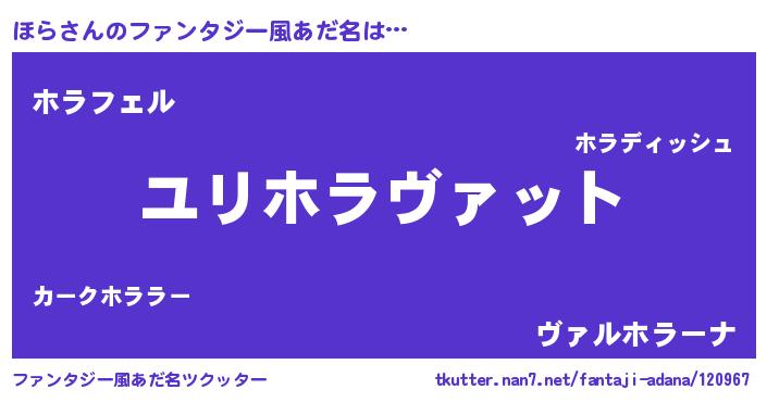 | 男性向けラノベタイトル風あだ名 | 『ホラスレイヤー』『魔弾の王とほら』 |