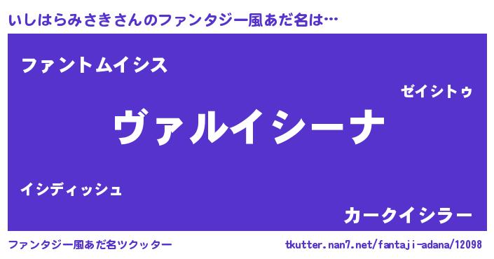 | 男性向けラノベタイトル風あだ名 | 『この素晴らしい世界にいしはらみさきを!』 |