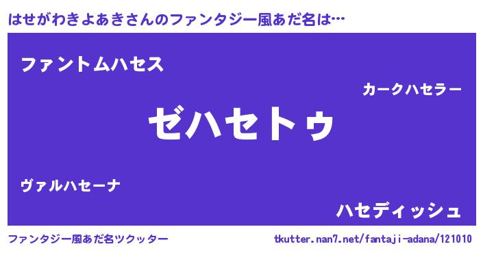 | 意味不明あだ名 | 『自称はせがわきよあき』 |