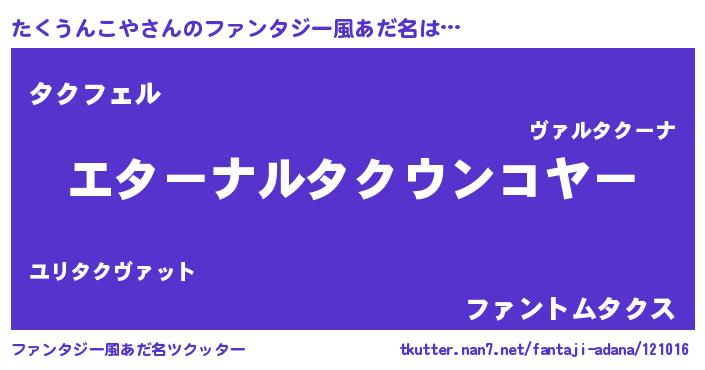 | 女子向けラノベタイトル風あだ名 | 『たくうんこやの雑貨屋さん』 |