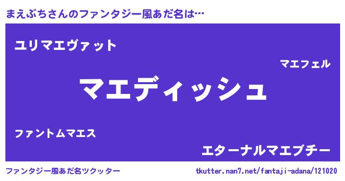 まえぶちさんのファンタジー風あだ名をツクッター!