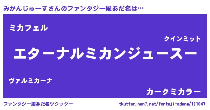 | 意味不明あだ名 | 『みかんじゅーすフォーエバー』 |
