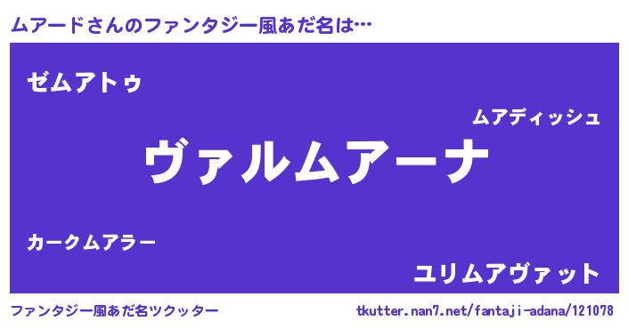 | 意味不明あだ名 | 『住所不定無職ムアード(86歳)』 |