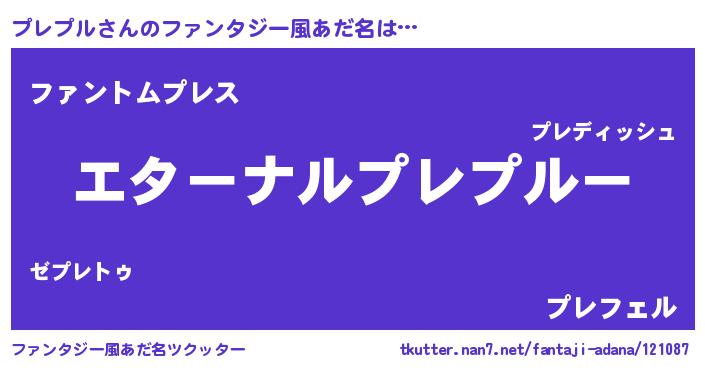 | 意味不明あだ名 | 『プレプルフォーエバー』『自称プレプル』 |