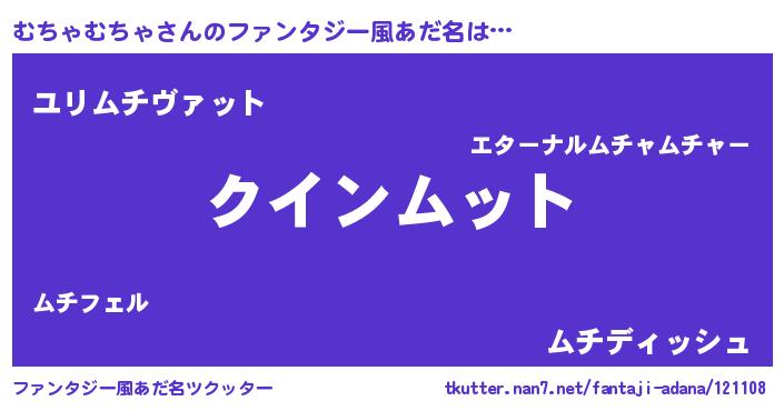 | 自動車の名前っぽいあだ名 | 『ムンR』『ムールスチイス』『ムクア』 |