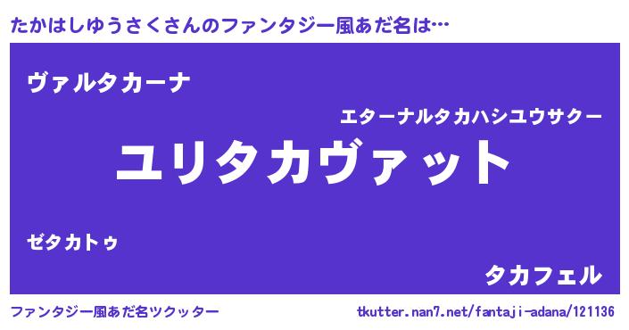 | ヒーロー風カッコイイあだ名 | 『仮面タカダー』『ネオタカハシユウサク』 |
