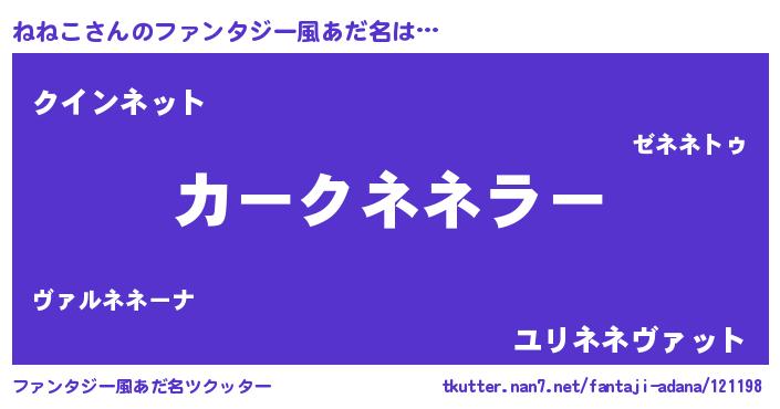 | ヒーロー風カッコイイあだ名 | 『天空の使者ねねこ』『究極戦士ネネコ』 |