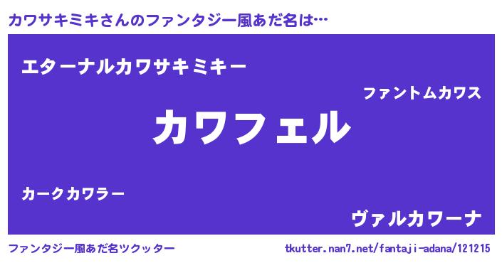 | ヒーロー風カッコイイあだ名 | 『スーパーカワサキミキ』『仮面カワダー』 |