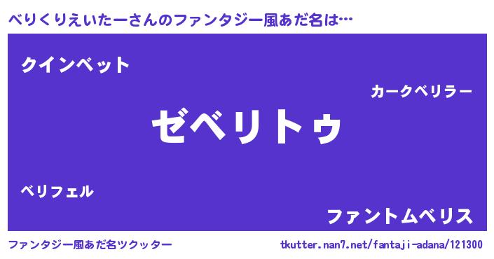 | 意味不明あだ名 | 『自称べりくりえいたー』 |
