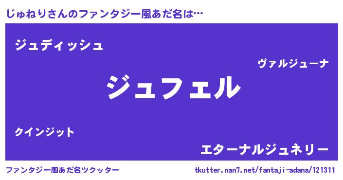 | 男性向けラノベタイトル風あだ名 | 『じゅねりの憂鬱』 |