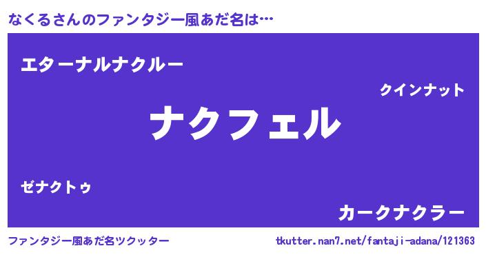 | 自動車の名前っぽいあだ名 | 『ナクティマ』『ナクア』『フィッナ』 |