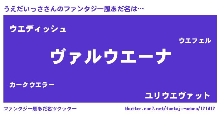 | 女子向けラノベタイトル風あだ名 | 『乙女ゲームの破滅フラグしかない悪役うえだいっさに転生してしまった…』 |