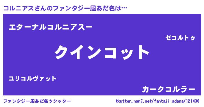 | 女子向けラノベタイトル風あだ名 | 『コルニアス夫妻のなれそめ』 |