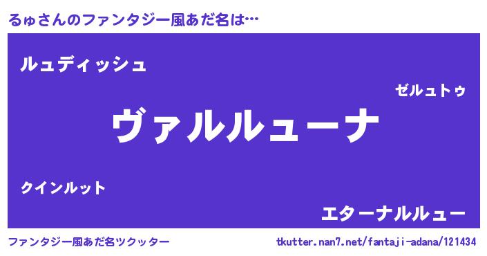 | 女子向けラノベタイトル風あだ名 | 『乙女ゲームの破滅フラグしかない悪役るゅに転生してしまった…』 |