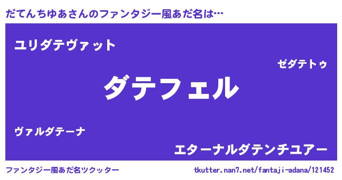 | 男性向けラノベタイトル風あだ名 | 『だてんちゆあの憂鬱』 |