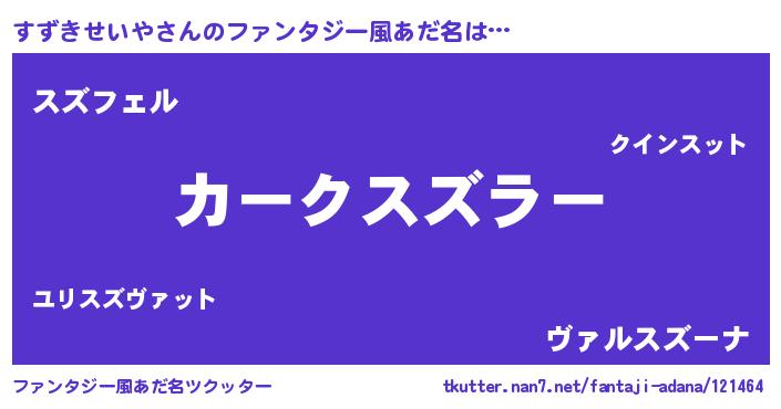 | 男性向けラノベタイトル風あだ名 | 『うちのすずきせいやが世界を掌握している!』 |