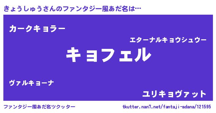 | 自動車の名前っぽいあだ名 | 『プリキョ』『フェキーョ』 |