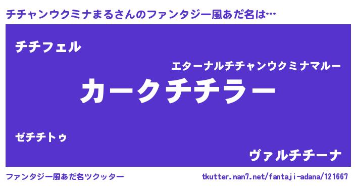 | 胡散臭い通販商品みたいなあだ名 | 『モテモテ間違いなし水晶球…その名も「チチャンウクミナまる」』 |