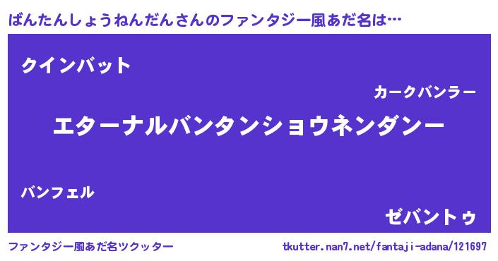 | 意味不明あだ名 | 『ばんたんしょうねんだんフォーエバー』 |