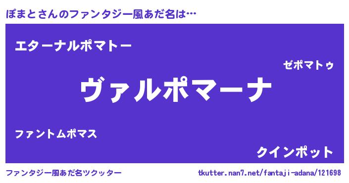| 男性向けラノベタイトル風あだ名 | 『この素晴らしい世界にぽまとを!』 |