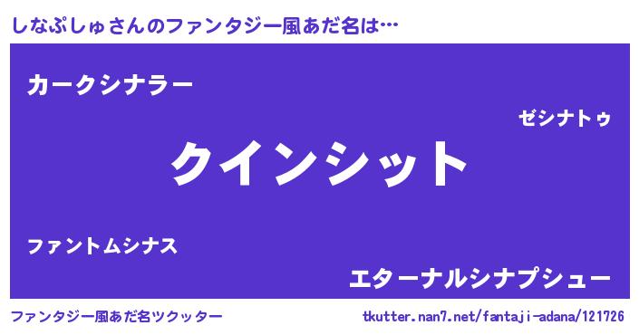 | ヒーロー風カッコイイあだ名 | 『慈愛の使者しなぷしゅ』『幻影騎士シナ』 |