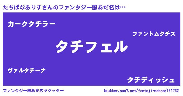 | ツイッター | たちばなありすさんのツイッターID『kikurage_man』 |