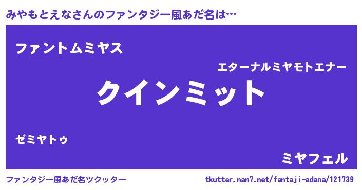 | ポケモン風あだ名 | 『ミックウザ』『ヒミヤモトエナ』 |