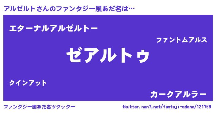 | 女子向けラノベタイトル風あだ名 | 『アルゼルトなんてお断りですっ。』 |