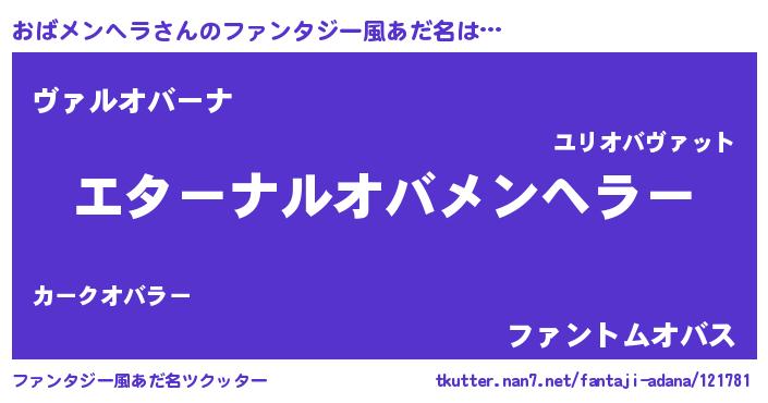 | 女子向けラノベタイトル風あだ名 | 『おばメンヘラの雑貨屋さん』 |