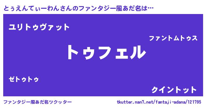 | 胡散臭い通販商品みたいなあだ名 | 『必ず成功するブレスレット…その名も「とぅえんてぃーわん」』 |