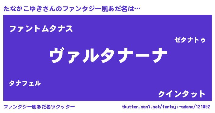 | 男性向けラノベタイトル風あだ名 | 『魔弾の王とたなかこゆき』 |