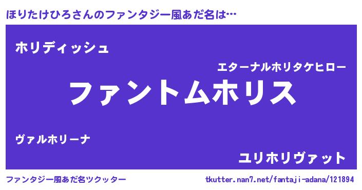 | ポケモン風あだ名 | 『ヒホリタケヒロ』『ゼニホリ』 |