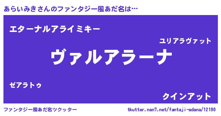 | 意味不明あだ名 | 『住所不定無職あらいみき(39歳)』 |