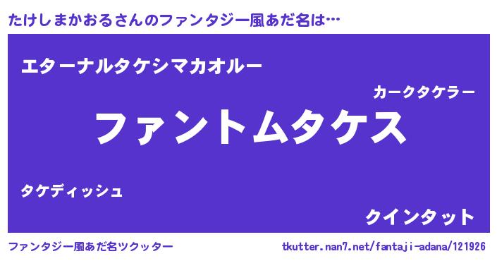 | ヒーロー風カッコイイあだ名 | 『暗黒騎士タケ』『ネオタケシマカオル』 |