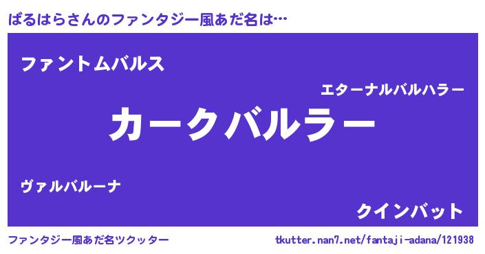 | 意味不明あだ名 | 『とにかく怪しいばるはら』 |