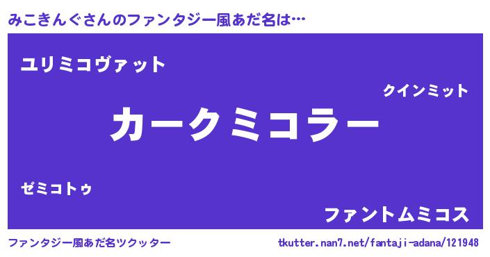 | 男性向けラノベタイトル風あだ名 | 『緋弾のミコキング』 |
