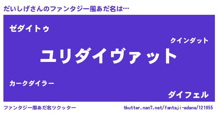 | 男性向けラノベタイトル風あだ名 | 『ダイシゲスレイヤー』『だいしげの憂鬱』 |