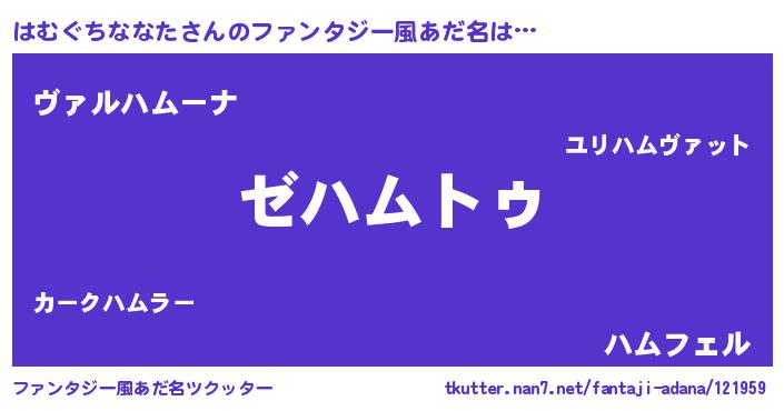 | 意味不明あだ名 | 『自称はむぐちななた』 |