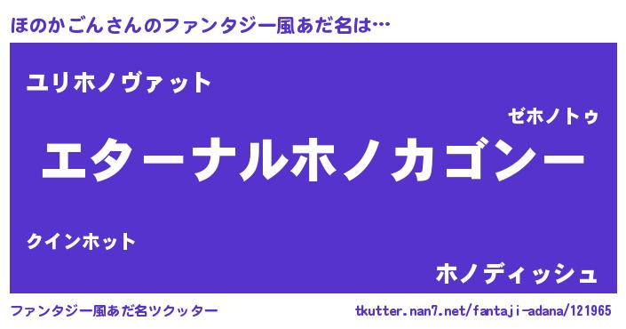 | 男性向けラノベタイトル風あだ名 | 『ほのかごんに滅ぼされるだけの簡単なお仕事です』 |