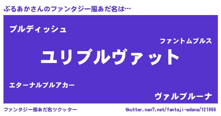 | 胡散臭い通販商品みたいなあだ名 | 『絶対に幸福をもたらす水素水…その名も「ぶるあか」』 |