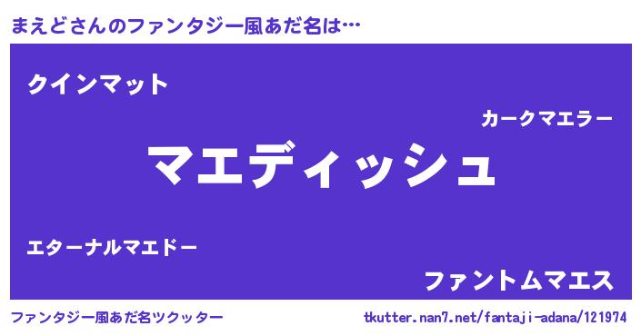 | 意味不明あだ名 | 『永久保存まえど』『まえどフォーエバー』 |