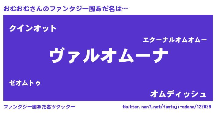 | 男性向けラノベタイトル風あだ名 | 『魔弾の王とおむおむ』 |