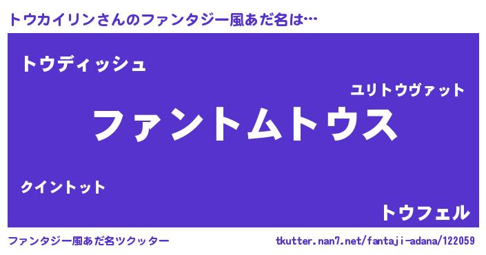 | 男性向けラノベタイトル風あだ名 | 『トウカイリンに滅ぼされるだけの簡単なお仕事です』 |