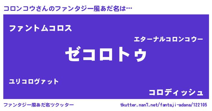 | 意味不明あだ名 | 『自称コロンコウ』『永久保存コロンコウ』 |