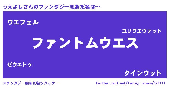 | 欧米人風あだ名 | 『ウサインうえよし』『マイケルうえよし』 |